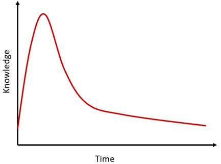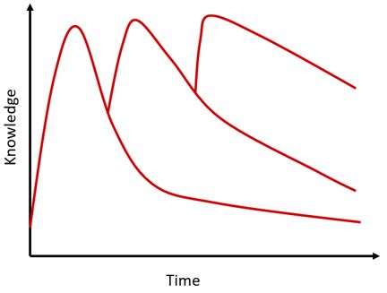 At the start of the lesson a student will usually know very little, and during the lesson that knowledge level will hopefully rise quite rapidly. However, without practice or review, that knowledge level will very soon return to just above its original level as the lesson is largely forgotten. This is why teachers will regularly link back to previous learning – to revise and review the content of previous lessons.